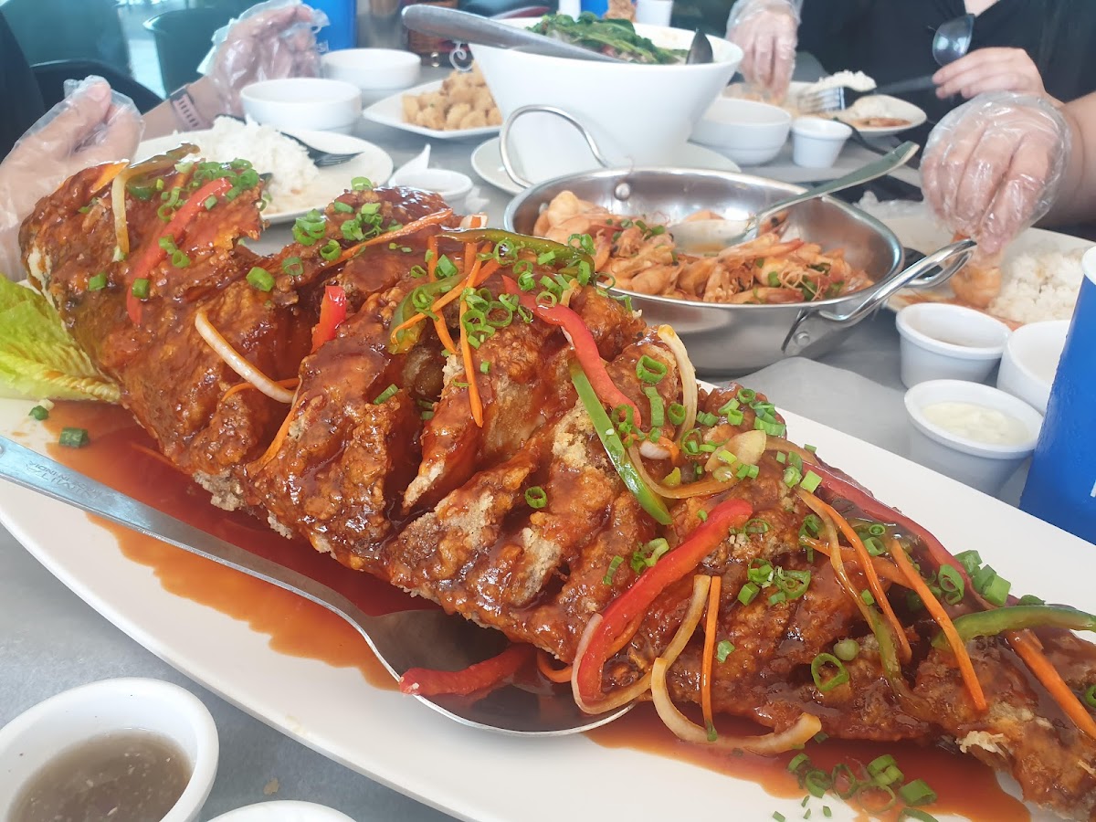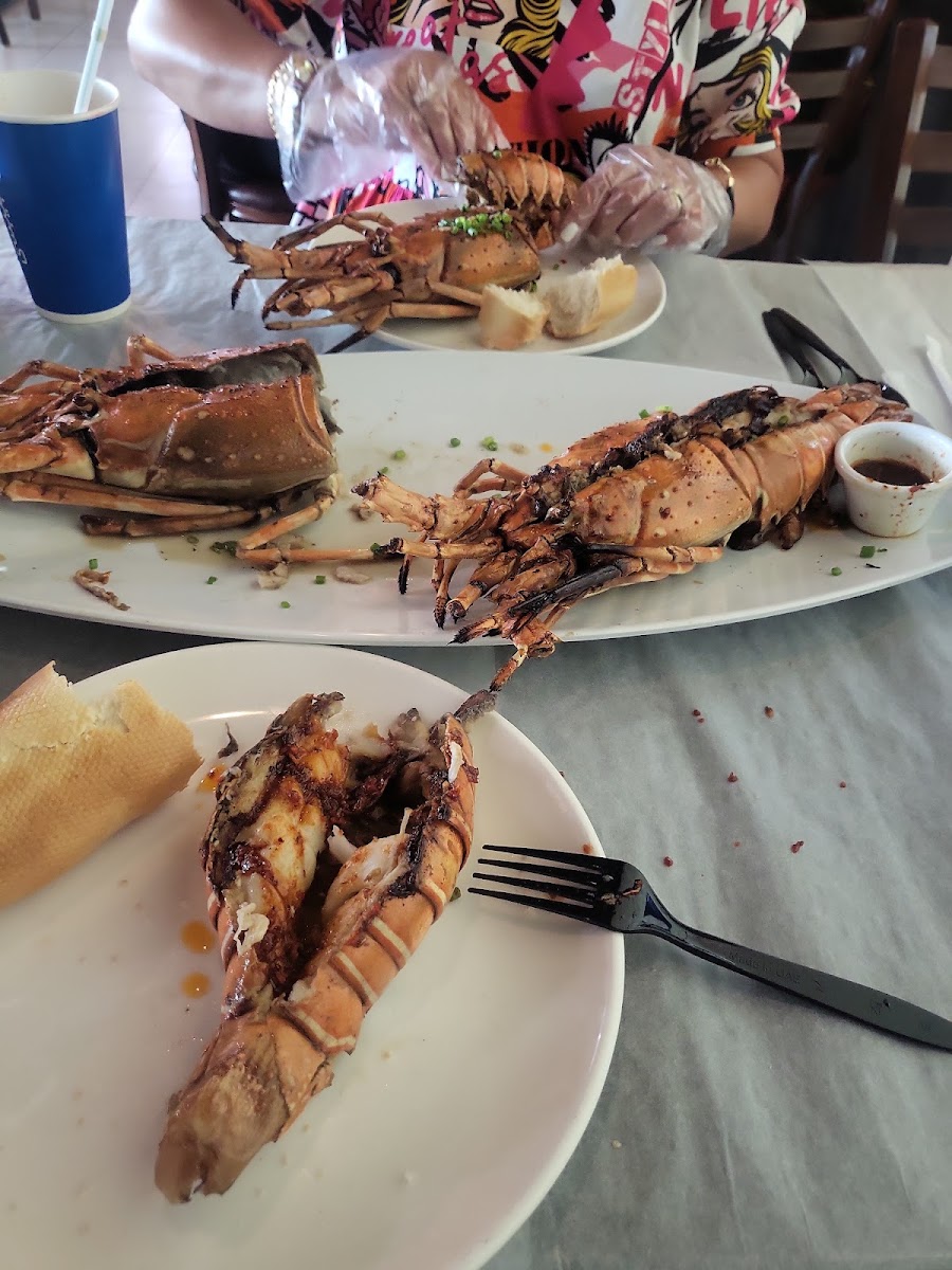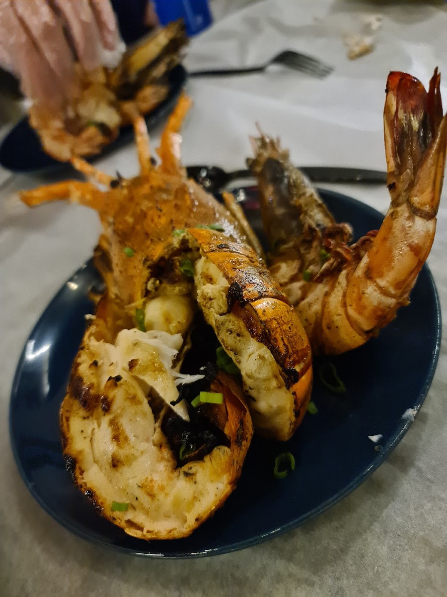 Lovely restaurant with Asian theme cooking. Compared to others around where they serve bread, this restaurant serves rice with the seafood you buy from the fish market. It’s a nice concept and I thoroughly enjoy this with the breeze of the waterfront. I grilled all the seafood ordered, prawns were freshly grilled and squids were not too dry. I ranked 4 stars mainly because the sea bream was raw in the middle and after it was brought back and recook, the meat was a bit hard. I saw other tables where fried calamari is a must! True story it does look more colourful and appetising, we didn’t go for the fry option but might give it a try next time. Service, you really need to expect 45 minutes over weekend for cooking unless you order some fried noodles where you will get them in 10-15 minutes. Although this is stated at the restaurant but just letting this group know the waiting times required for this. Lovely restaurant and will come back in near future.