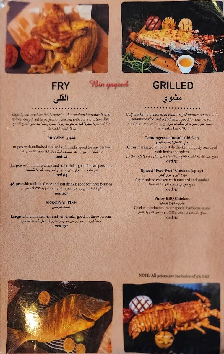 Paluto Restaurant Menu